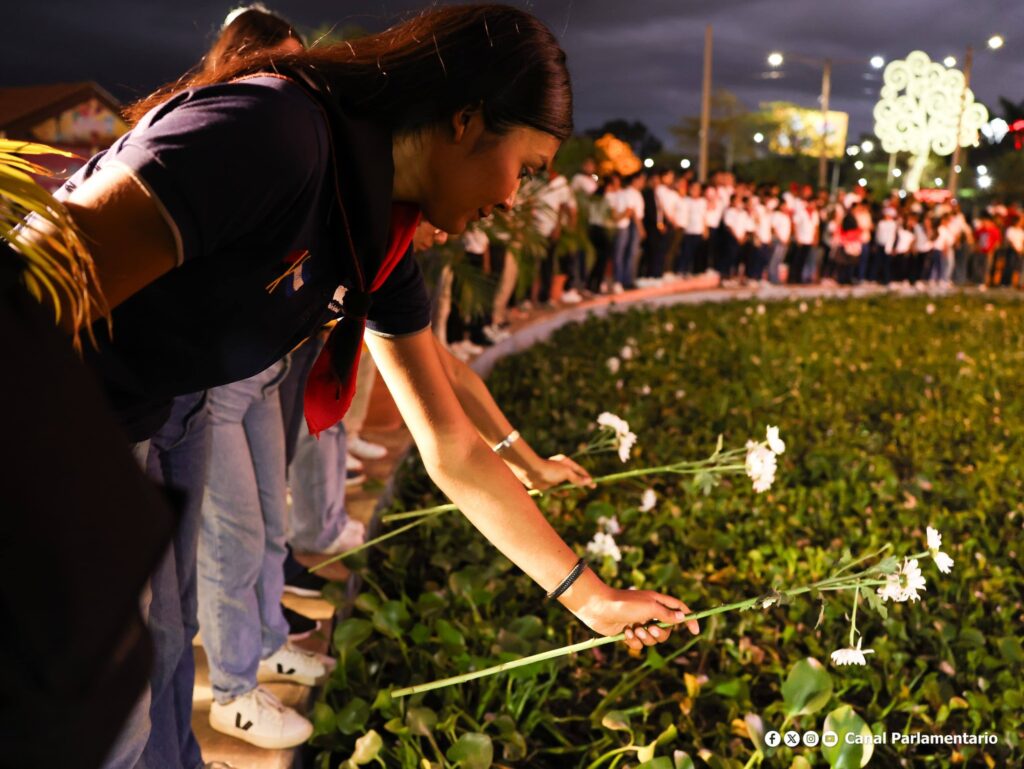 “¡Chávez Vive, la Lucha Sigue, Chávez Vive, La Lucha Sigue, Chávez Vive, ¡la Lucha Sigue!”, exclamaron con energía, los jóvenes sandinistas mientras en sus manos sostenían una flor, la misma que simboliza la vida y fuerza del dirigente latinoamericano que hizo su tránsito a la inmortalidad el 5 de marzo del año 2013.