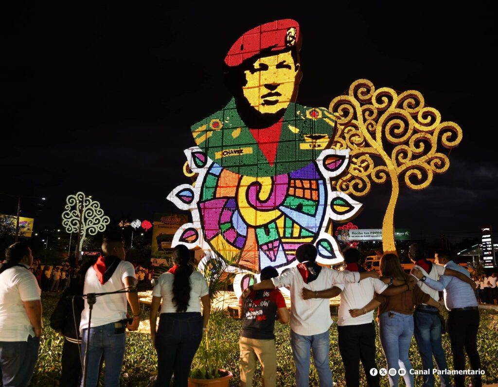 Subrayó que la Rotonda Comandante Hugo Chávez, espacio construido por el Gobierno Sandinista dirigido por los Copresidentes, Comandante Daniel Ortega y Compañera Rosario Murillo, está dedicada para honrar la memoria y legado del hijo de Venezuela.